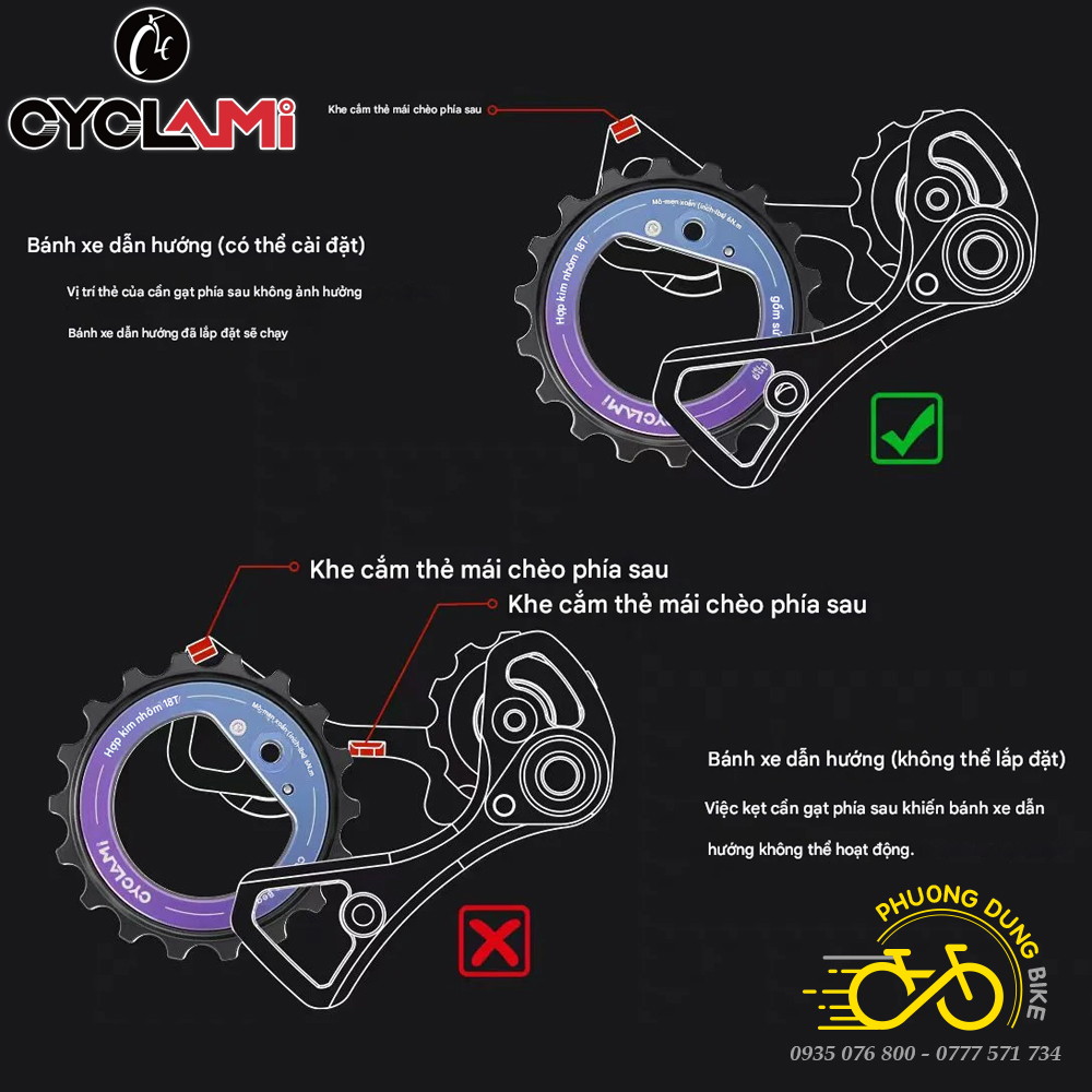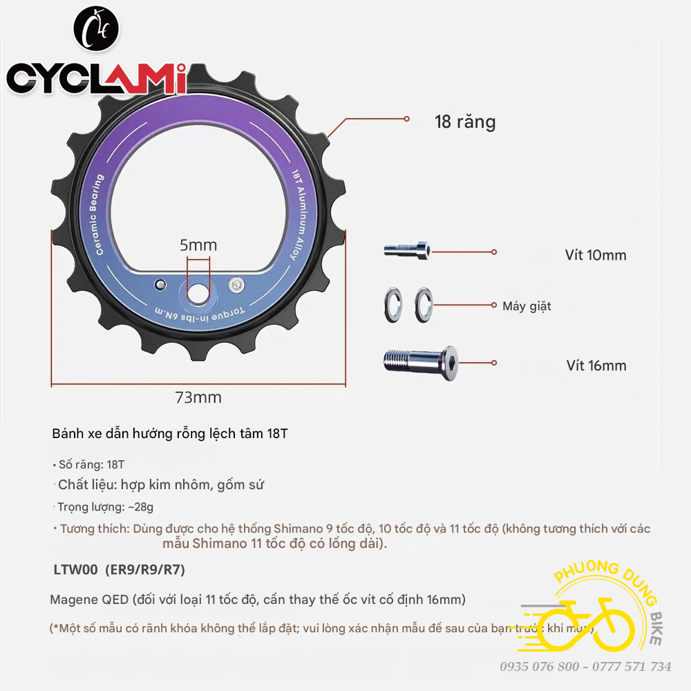 Bánh Răng Củ Đề Rỗng Xe Đạp CYCLAMI 18T – Pulley Ceramic Vòng Bi Cao Cấp Cho SHIMANO SRAM AXS, L-TWOO