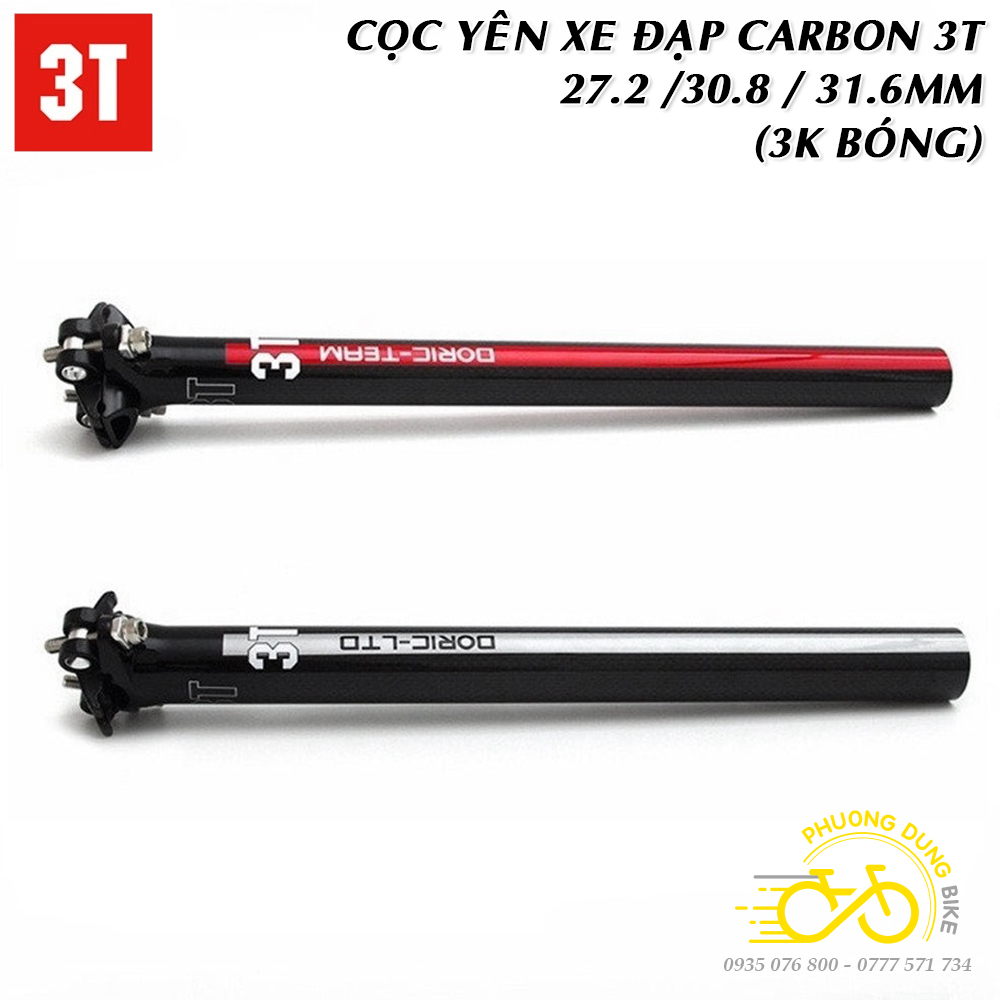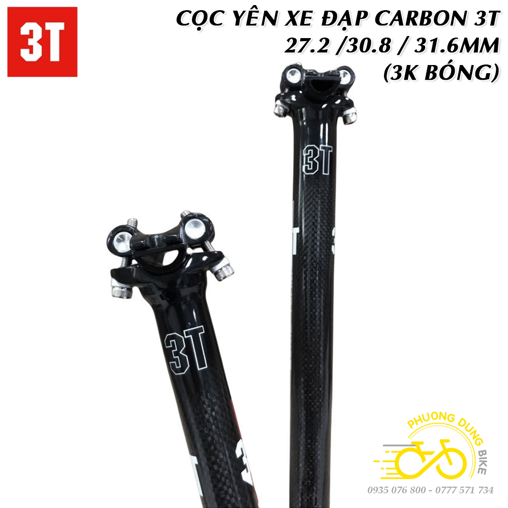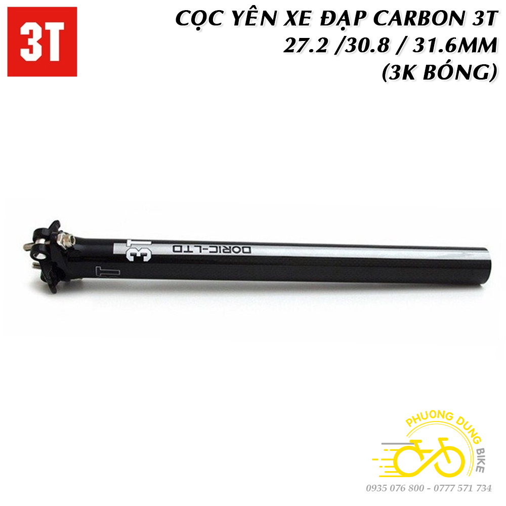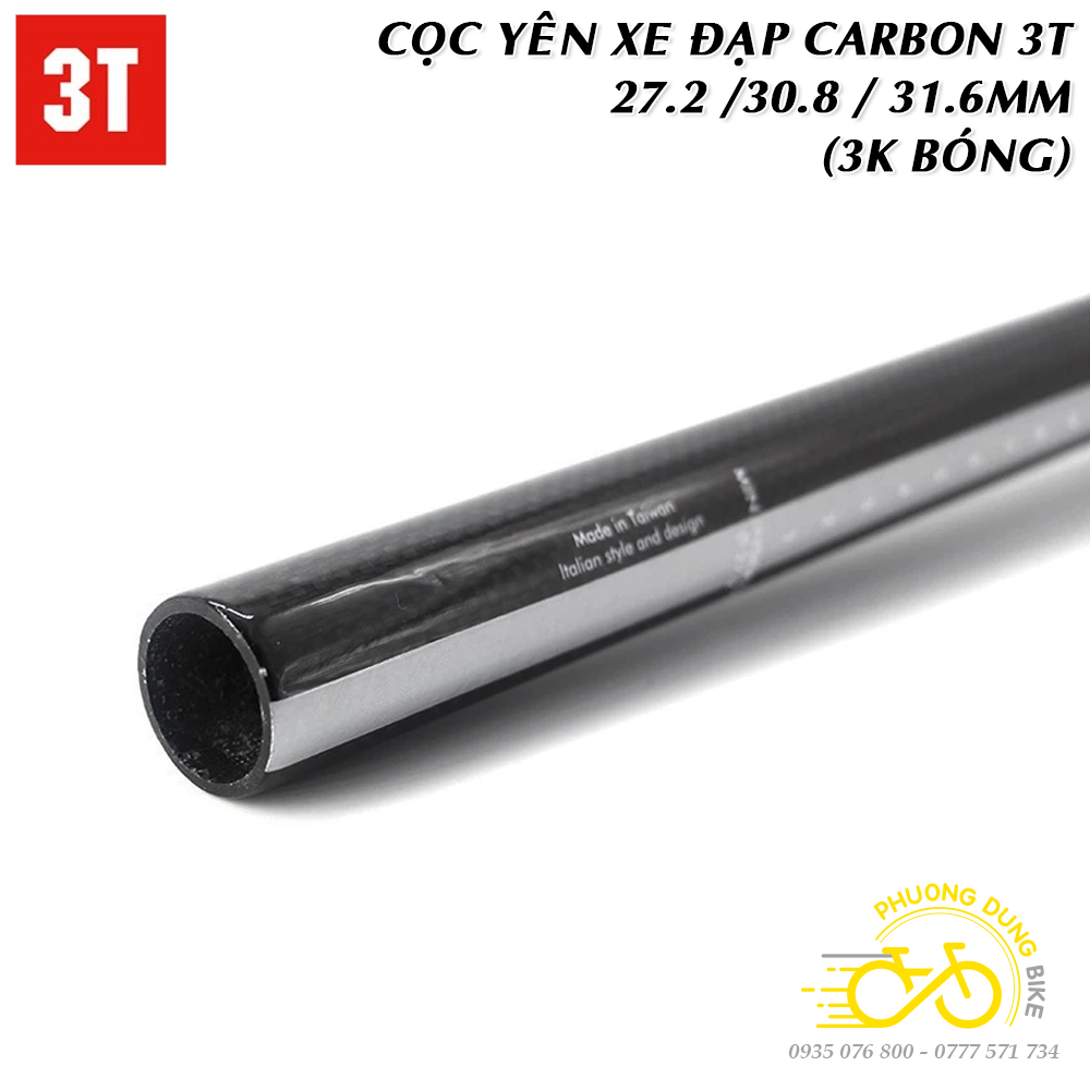 Cọc yên xe đạp Carbon 3T 27.2 / 30.8 / 31.6mm (Thẳng – 3K Bóng)