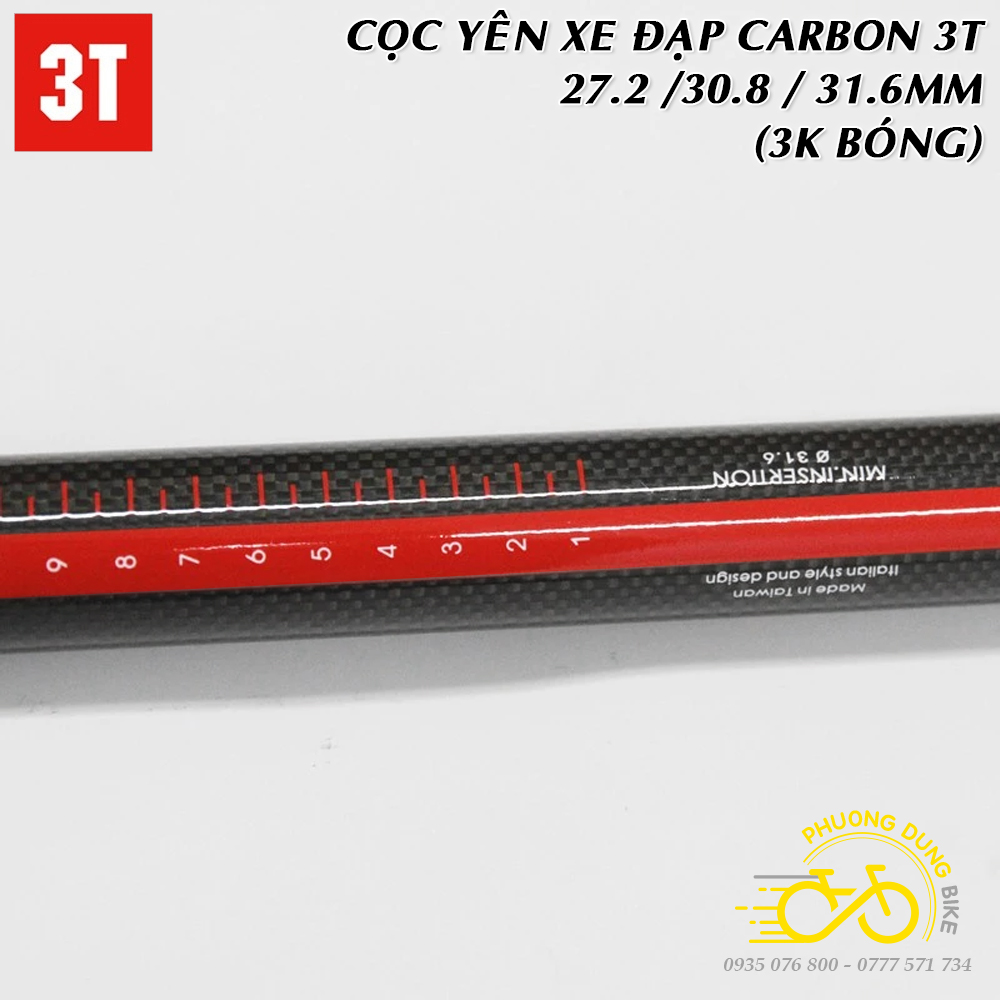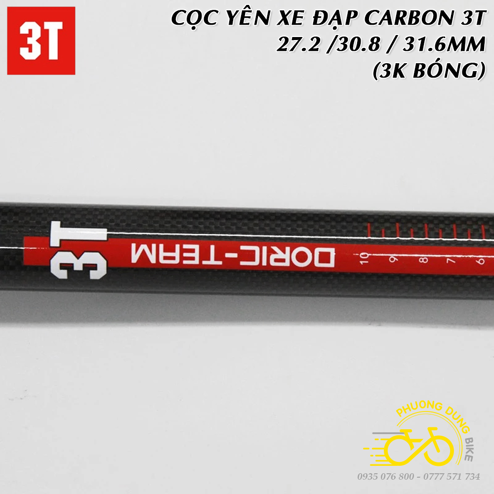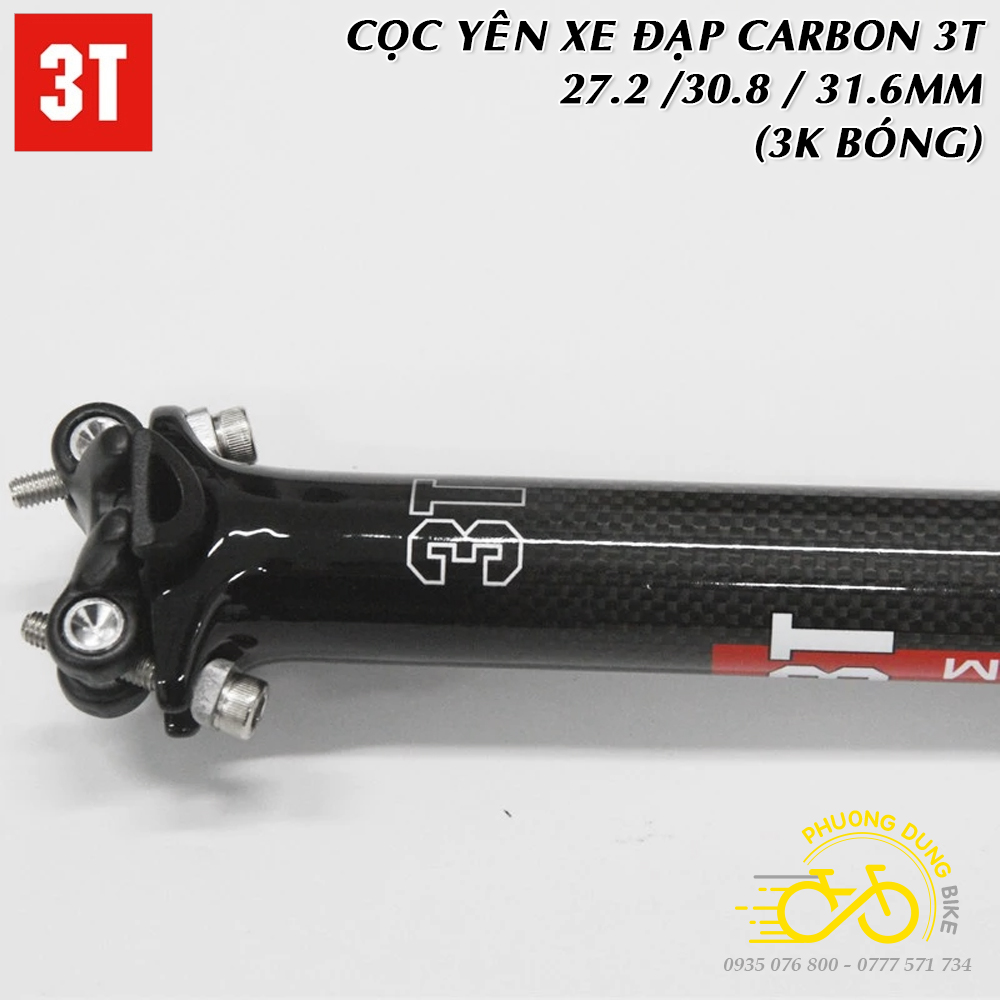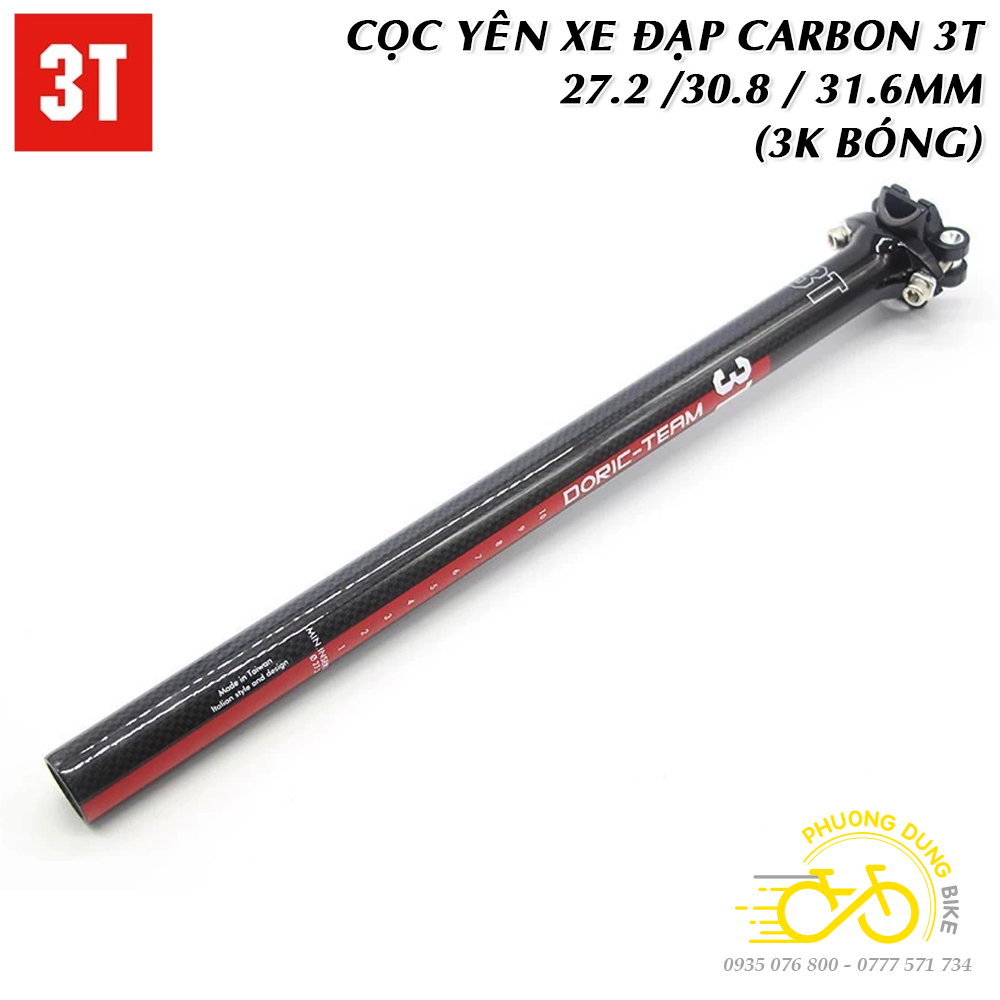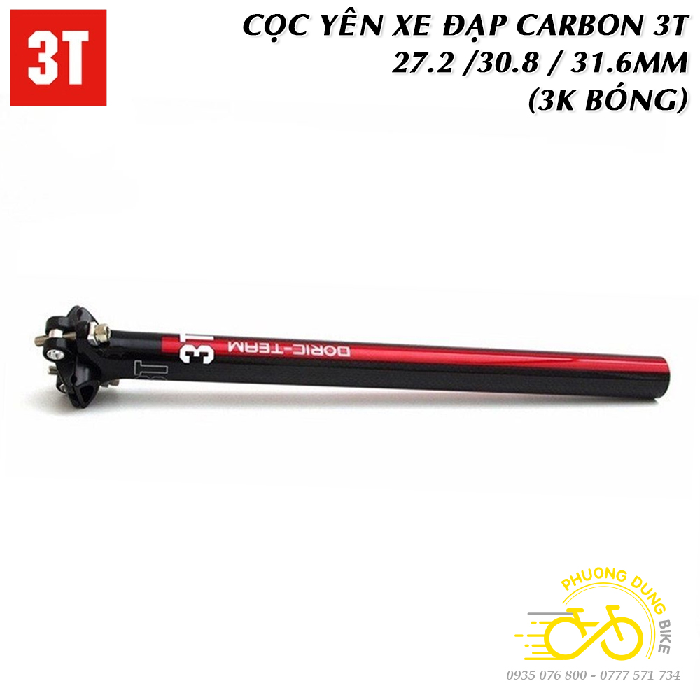 Cọc yên xe đạp Carbon 3T 27.2 / 30.8 / 31.6mm (Thẳng – 3K Bóng)