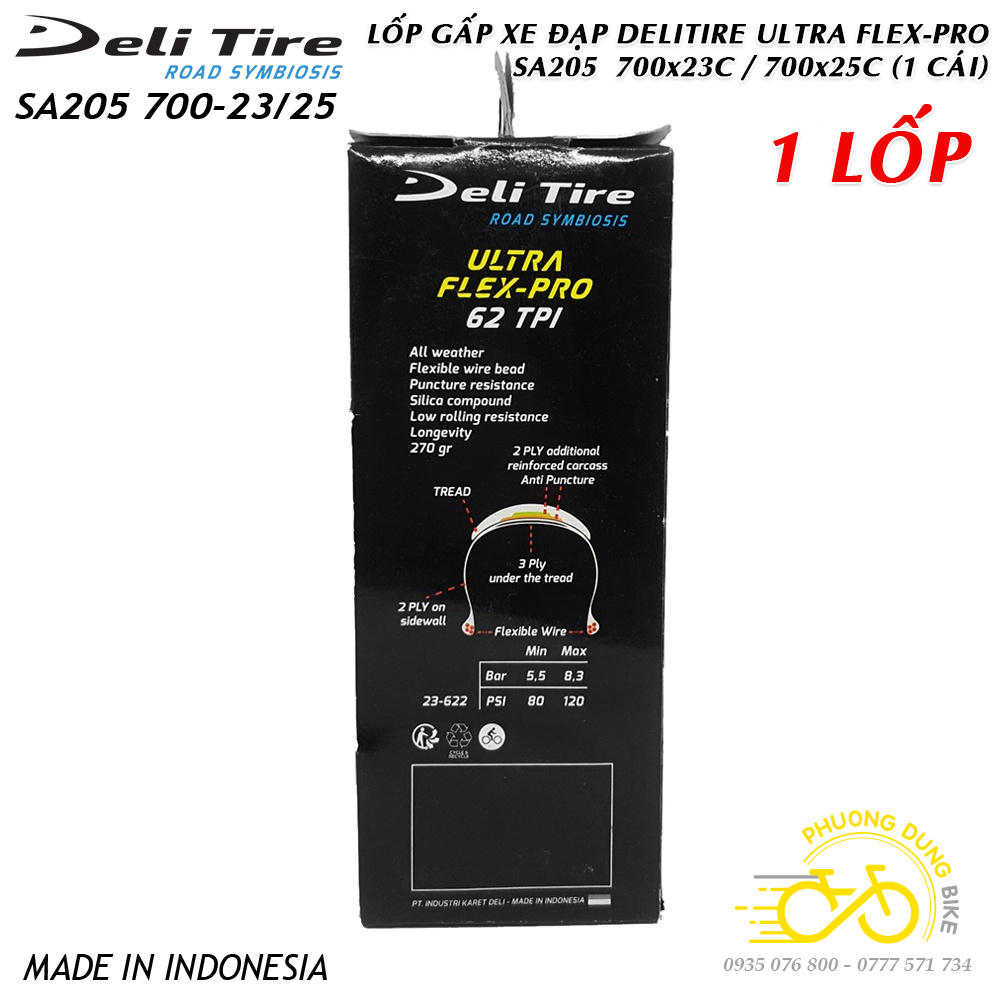 Lốp (Vỏ) gấp xe đạp DELI TIRE ULTRA FLEX-PRO SA205 700x23C / 700x25C – 1 Cái