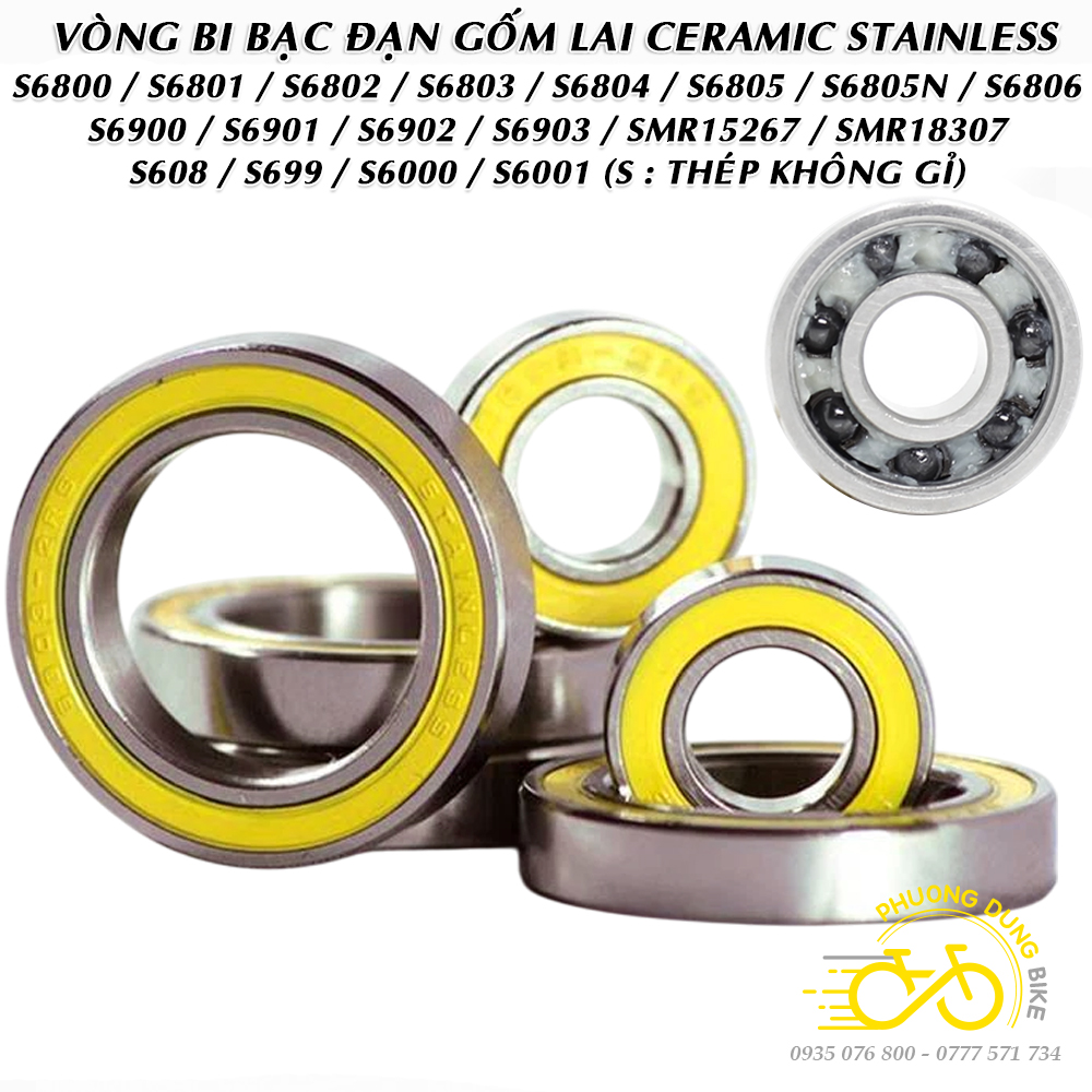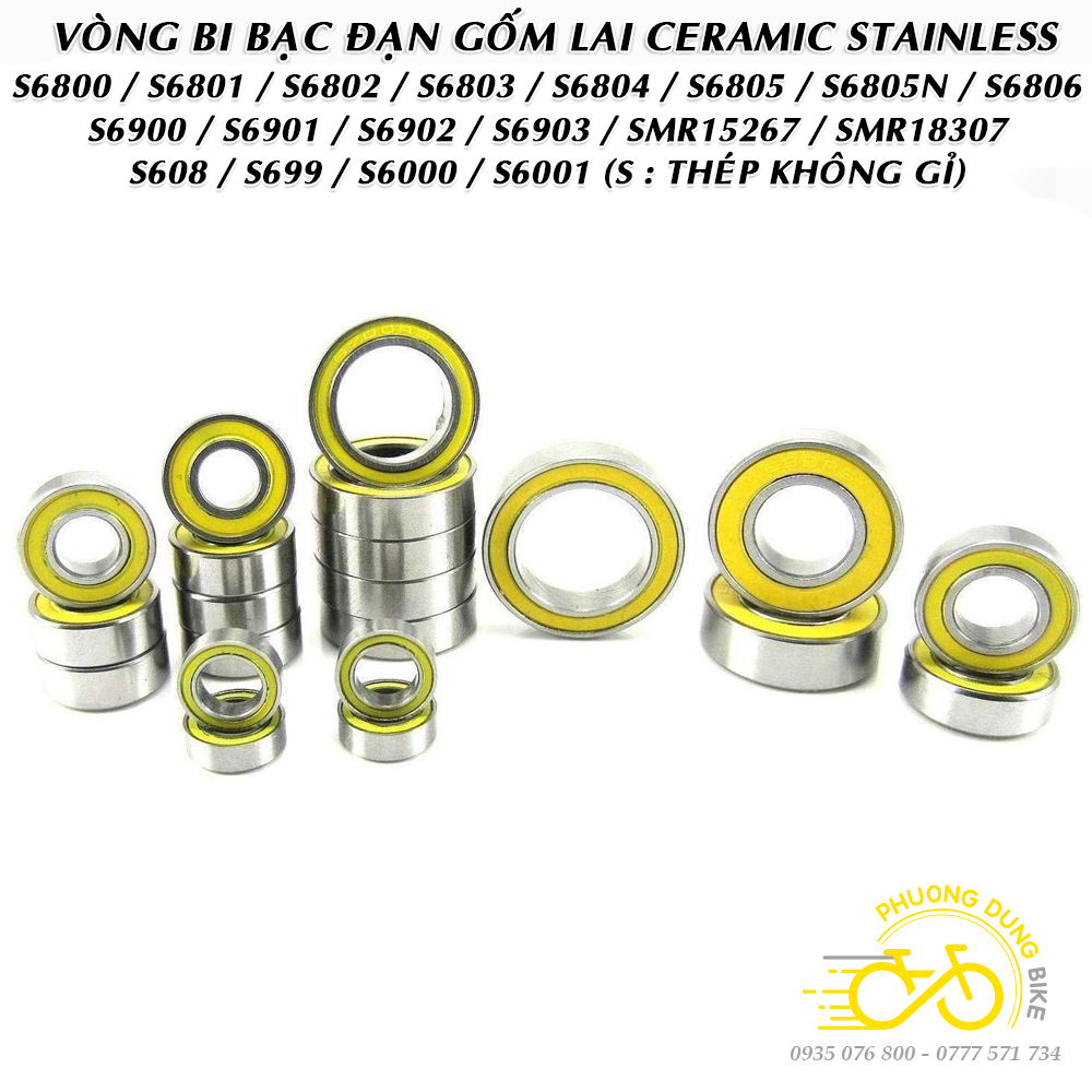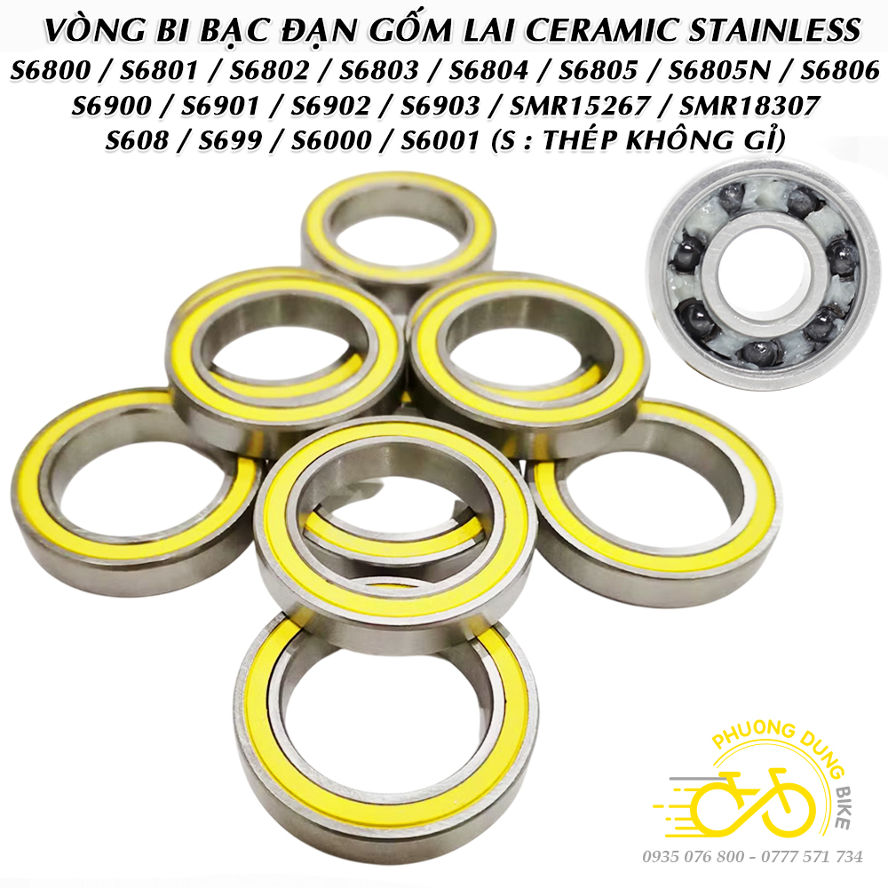 Vòng bi không rỉ bạc đạn gốm lai CERAMIC S699 S6000 S6001 S6802 S6803 S6805 S6806 S6901 S6902 S6903 SMR15267 SMR18307 (Thép không rỉ + Nắp su Vàng)