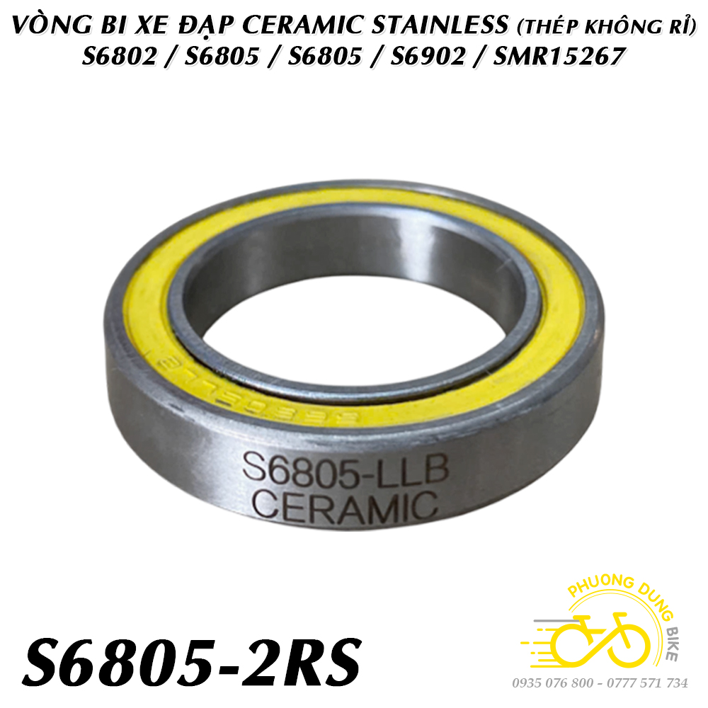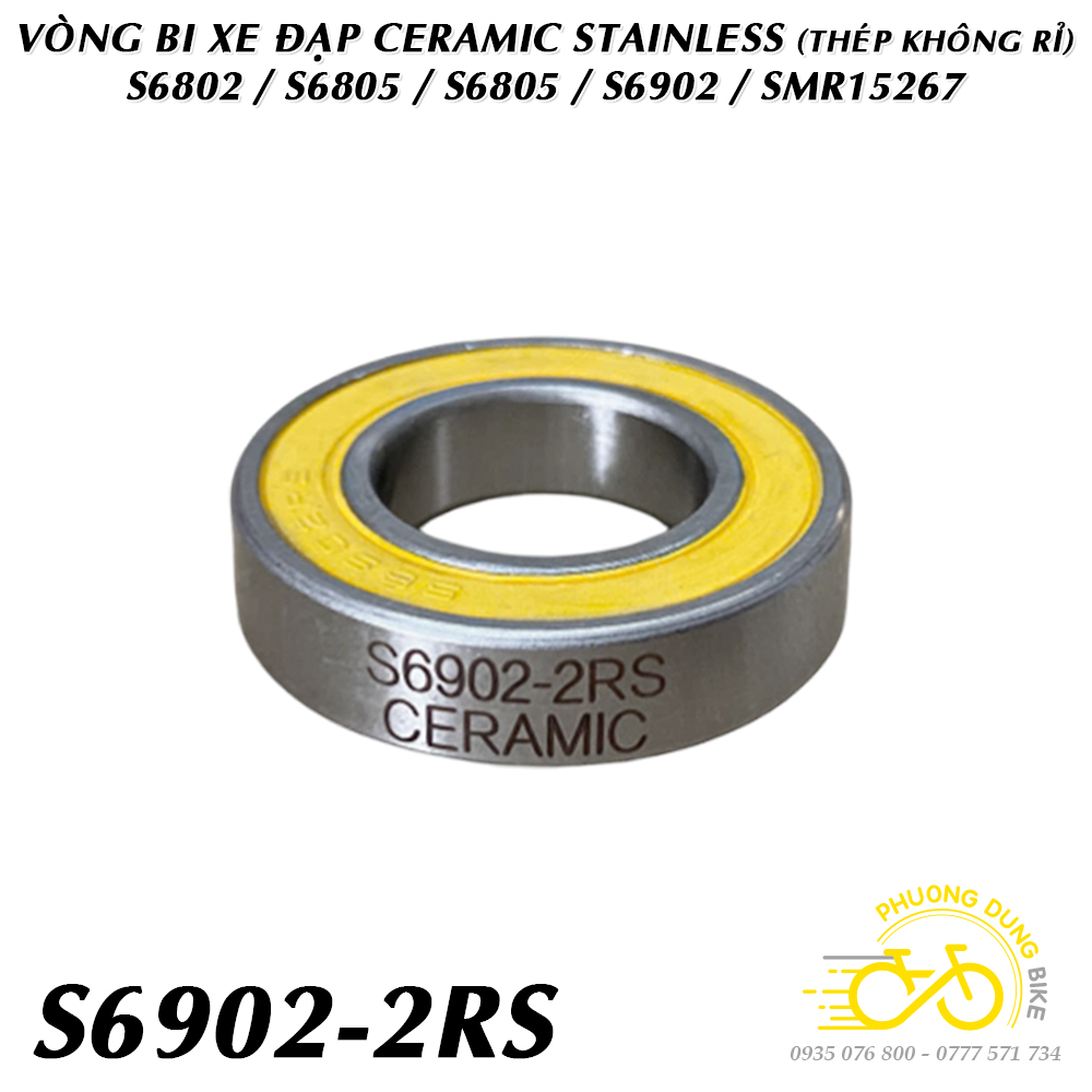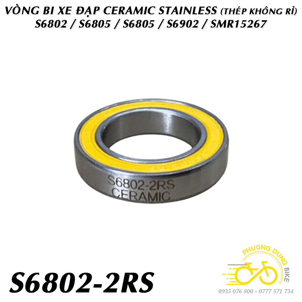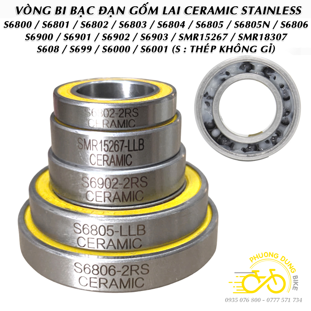 Vòng bi không rỉ bạc đạn gốm lai CERAMIC S699 S6000 S6001 S6802 S6803 S6805 S6806 S6901 S6902 S6903 SMR15267 SMR18307 (Thép không rỉ + Nắp su Vàng)